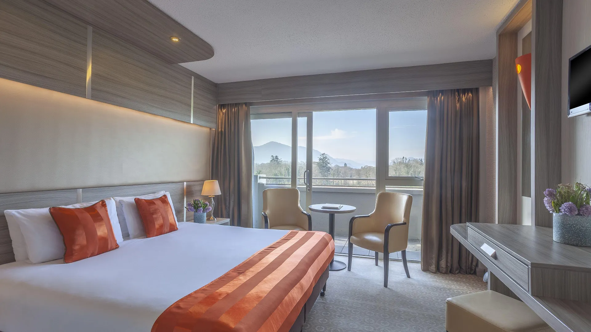 Most of the rooms at Gleneagle Killarney Hotel overlook Killarney National Park and come with a flat-screen TV with satellite channels as well as coffee and tea making facilities for extra comfort.